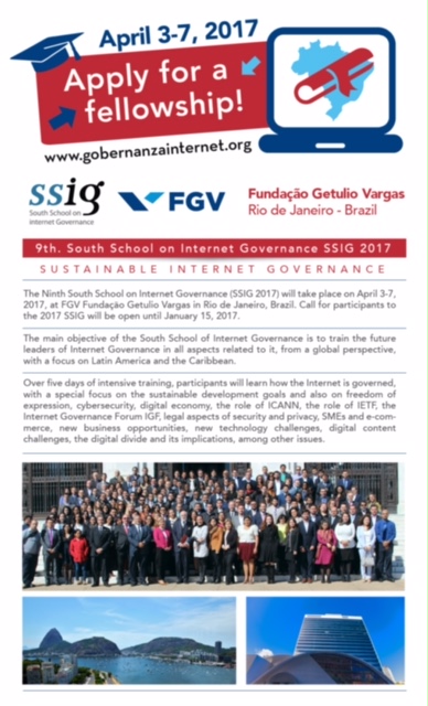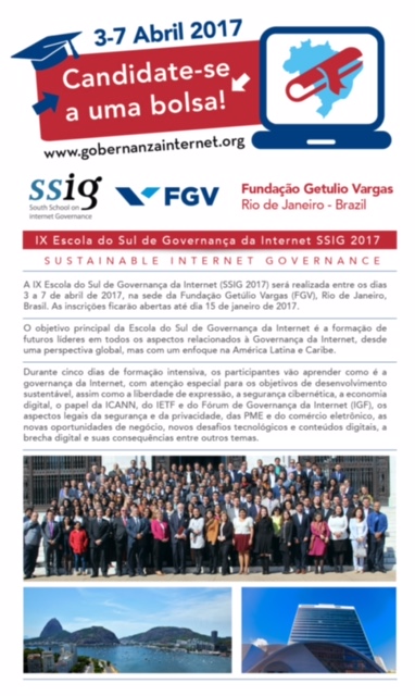 Fwd: Fellowship - Ninth South School on Internet Governance 2017 - Fundação Getúlio Vargas - Rio de Janeiro, 3 - 7 April