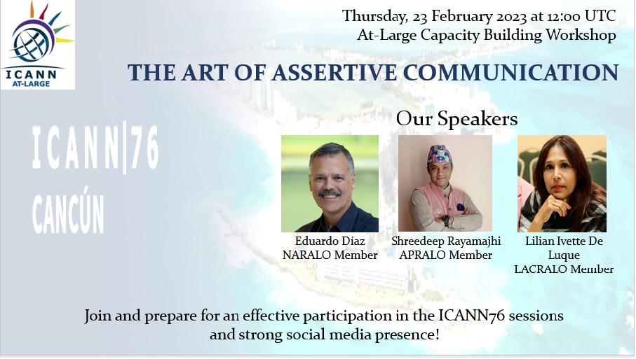 [lac-discuss-en] REMINDER / Workshop Invitation - REGISTER - At-Large Capacity Building Workshop - THE ART OF ASSERTIVE COMMUNICATION