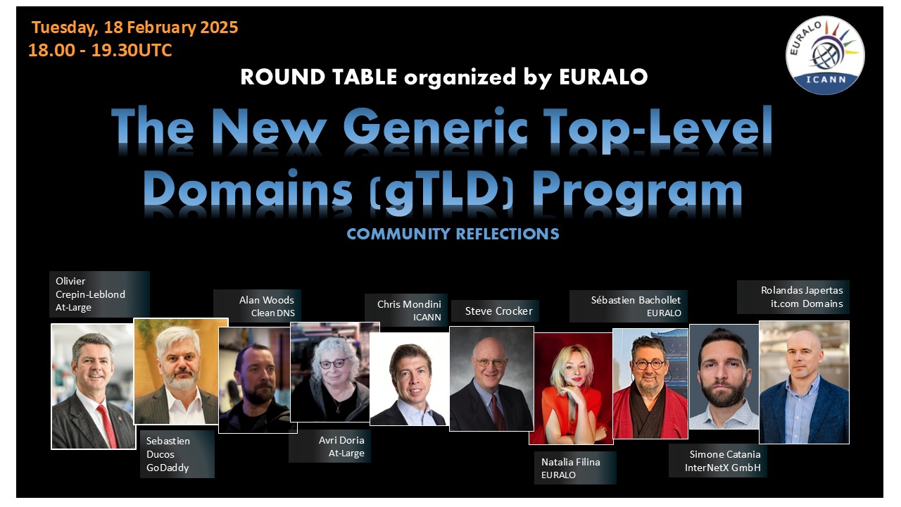 [lac-discuss-en] ** REGISTER ** | EURALO Round Table on The New Generic Top-Level Domains (gTLD) Program, community reflections | 18 February 2025 at 18:00 UTC