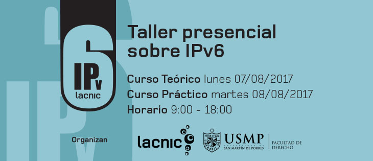 Curso Teórico: https://eventos.lacnic.net/ev3/lima-ipv6-teorico-2017/detail Curso Práctico: https://eventos.lacnic.net/ev3/lima-ipv6-practico-2017/detail