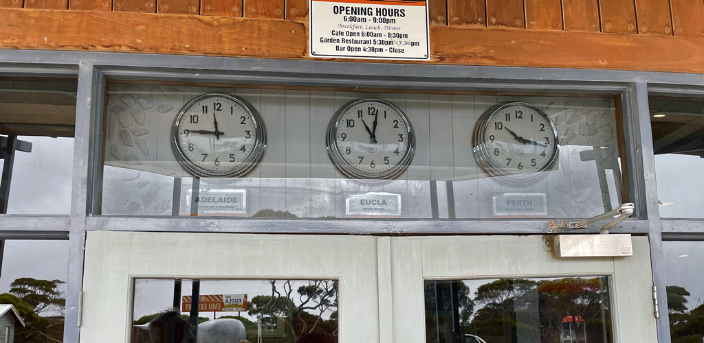 A friend has relatives driving towards Perth (from eastern AU). They sent him the attached photo (after I asked if they could confirm the time there as they passed through) from the local motel entrance. This is just a confirmation of what we already knew. Photo date is 13 August 2022; since it is a photo of clocks, the time is self evident (note, daylight, not near midnight). kre