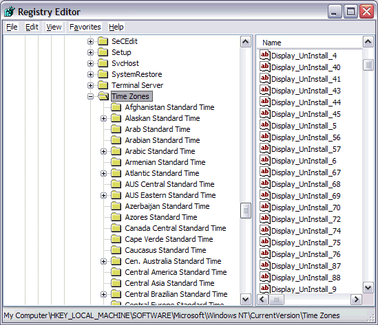 Hello, I am working on an issue related to Brazil timezone. Our code reads the DST rules from windows registry instead of tzdata. My question is -- how do I determine whether the windows system has applied the latest timezone DST rules from the following registry? I don't know how to interpret the binary data HKEY_LOCAL_MACHINE\SOFTWARE\Microsoft\Windows NT\CurrentVersion\Time Zones Any advice is appreciated. Thanks, Florence