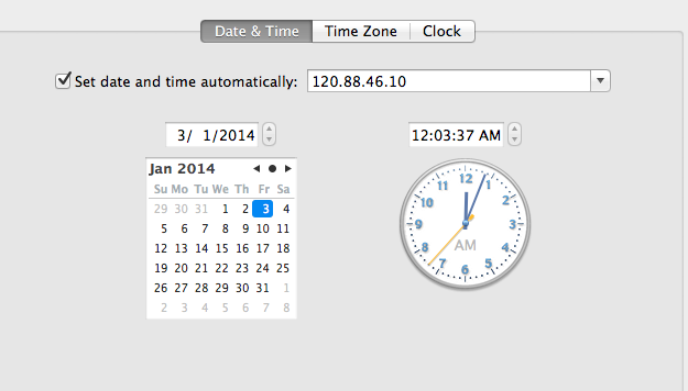 It seems quite likely that your Apple machines are getting UTC data from the NTP server, but using a local (i.e. on-the-machine) tz database for the timezone adjustment. I have the impression that Apple does not publish tzdata updates to user machines by the usual Software Update mechanism. You may need to install the latest version of tzdata, on every machine, yourself. From: tz-bounces@iana.org [mailto:tz-bounces@iana.org] On Behalf Of Michael Gardiner Sent: 03 January 2014 08:10 To: tz@iana.org Subject: [tz] Timezones in Jordan Importance: High Can you explain the current situation with regards to timezone data for Jordan. I work in the Australian Embassy in amman Jordan and am having a lot of issues with setting the correct time. On our computers when we use a NTP source such as: server 0.pool.ntp.org 120.88.46.10 server 1.pool.ntp.org server 2.pool.ntp.org server 3.pool.ntp.org It sets the clock 1 hour ahead of the correct time so I have to set them all manually which is not good. I have had a look at TZDATA2013i and it had the time as UTC +2 which should give us the correct time. Any Advise would be great. Regards Michael Gardiner First Secretary Technical Australian Embassy Amman Screen shot of using NTP server advances time by 1 hour: [cid:image001.png@01CF0867.DE548B10] Having to Manually set the time (+4 minutes is writing the email): -- [cid:image002.png@01CF0867.DE548B10] This email and any attachments are confidential and may also be privileged. If you are not the intended recipient, please delete all copies and notify the sender immediately. You may wish to refer to the incorporation details of Standard Chartered PLC, Standard Chartered Bank and their subsidiaries at http://www.standardchartered.com/en/incorporation-details.html Insofar as this communication contains any market commentary, the market commentary has been prepared by a sales and/or trading desk of Standard Chartered Bank or its affiliate. It is not and does not constitute research material, independent research, recommendation or financial advice. Any market commentary is for information purpose only and shall not be relied for any other purpose, and is subject to the relevant disclaimers available at http://wholesalebanking.standardchartered.com/en/utility/Pages/d-mkt.aspx. Please visit http://wholesalebanking.standardchartered.com/en/capabilities/financialmarke... for important information with respect to derivative products.